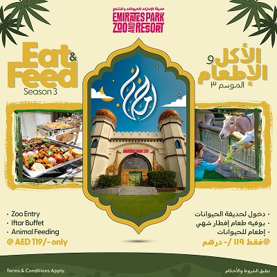 DUBAI – March 11, 2024: This Ramadan, get ready for an extraordinary family escapade as Emirates Park Zoo & Resort welcomes back the much anticipated “Eat & Feed” for its dazzling third year starting from the first day of Ramadan until the last day. It’s not just an event; it’s a magical journey into a world of wonders, tailor-made for families seeking a truly unforgettable adventure.