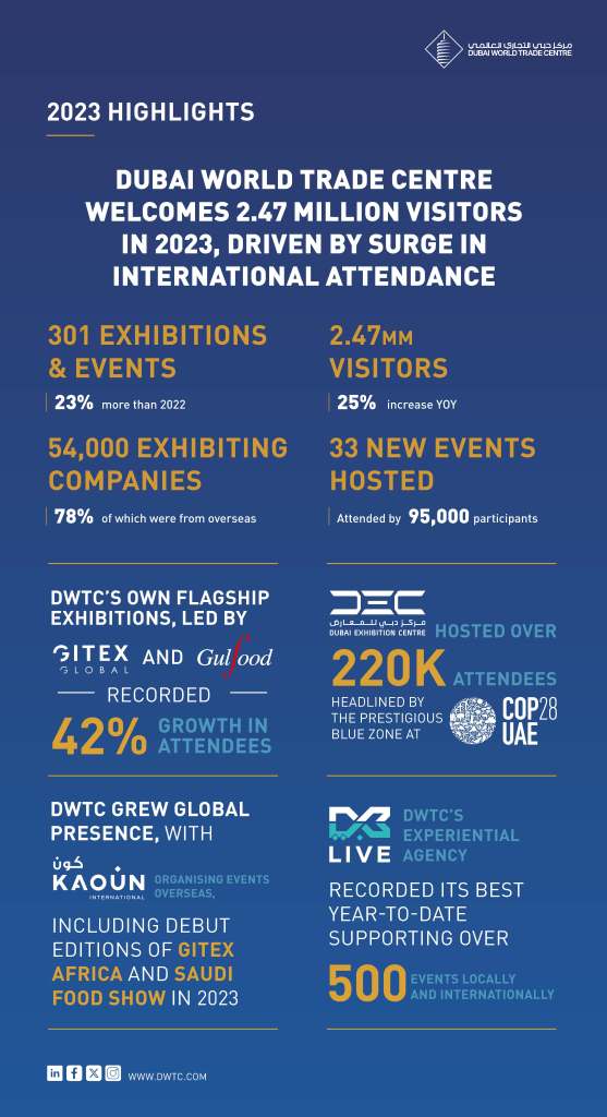 Dubai World Trade Centre (DWTC) Achieves Remarkable Milestone with 2.47 Million Visitors in 2023, Driven by Surge in International Attendance