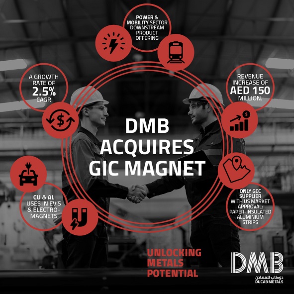 “The acquisition of GIC Magnet expands DMB’s downstream product offering and aligns with our diversification strategy to expand our market presence and broaden our portfolio on a global scale,” said Mohamed Al Ahmedi, Chief Executive Officer of Ducab Metals Business. By penetrating wider markets and advanced economies, the company will achieve sustainable revenue growth of USD 40.5 million. This strategic move reinforces our commitment to innovation and sustainability, providing our customers with a comprehensive range of high-quality, eco-friendly solutions that meet their evolving needs. With the demand for these products in various industry segments growing at a CAGR of 2.5% globally, this acquisition strengthens our ability to efficiently serve diverse industrial requirements and create long-term value for our stakeholders.”