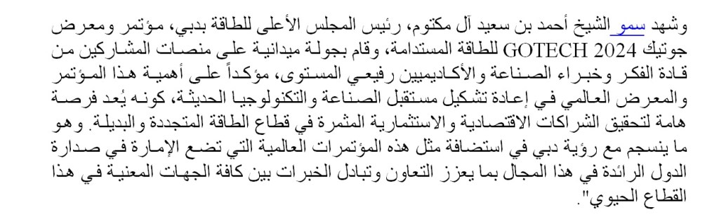 Business & Investments انطلاق فعاليات مؤتمر ومعرض “جوتيك 2024” للطاقة المستدامة في دبي May 7, 2024 uaenews247 Related