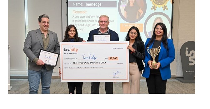 Dubai, May 2024 – Trusity’s truPreneurs programme, an innovative initiative aimed at nurturing the entrepreneurial spirit among young minds, has successfully concluded its latest edition, equipping participants with essential skills and knowledge to thrive in the dynamic world of business. The winners of the ‘Best Startup Pitch Award’ for this edition were Harsimar Kaur Chhatwal and Dhwani Mehta (Raffles World Academy) for their project Teenedge and Gauri Nanda Salu (Indian High School) for her project HealthSync. They were awarded with AED 10,000 as startup funding package per project, along with mentorship and guidance for product design and development.