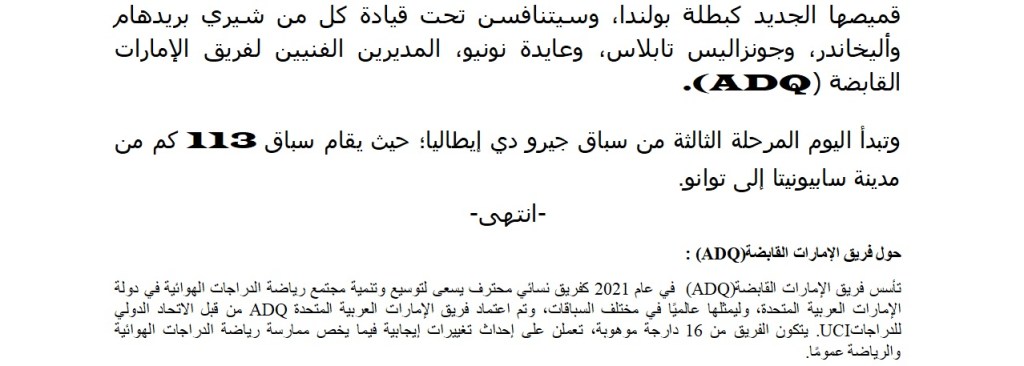 Sports & Recreations كيارا كونسوني لاعبة فريق الإمارات القابضة للدرجات تفوز بالمرحلة الثانية من July 9, 2024 uaenews247 Related