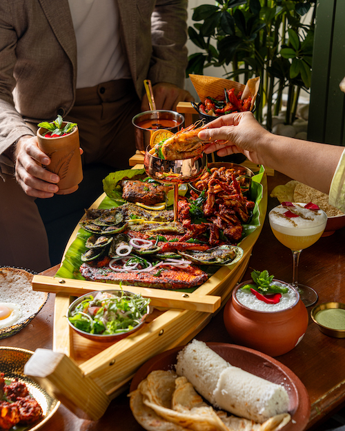 Priced at AED 399, THE VALLAM BOAT takes one on a tour from Kerala to Dubai, featuring 10 varieties of Cochin seafood served with signature beverages in a wooden boat which is 100 cm in length and 34 cm in width.