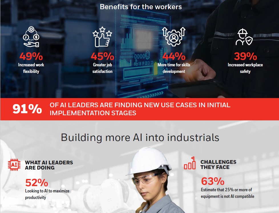 - Workforce productivity, flexibility, and safety are cited as key gains from AI applications along with its potential to address the industrial skills shortage