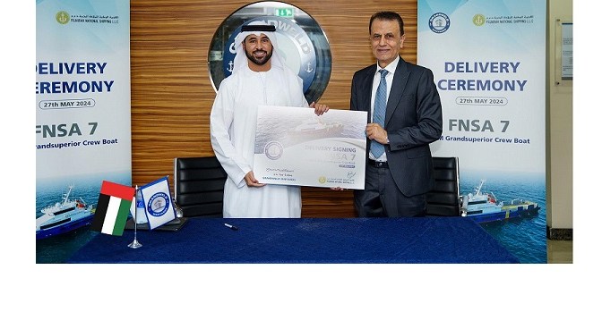 Khameis M Khaddeim, CEO of Fujairah National Shipping LLC, stated “We are delighted to have received the FNSA 7 from Grandweld Shipyards, as this cutting-edge vessel will significantly improve our operational capabilities, allowing us to provide more efficient and sustainable services to our clients. The FNSA 7 demonstrates Grandweld’s dedication to quality and innovation, and we are eager to make use of this new tool to further solidify our position within the regional maritime industry. With this new addition to our fleet, we continue to uphold our commitment to operational excellence and implement transformative technologies in maritime operations, enabling us to excel in the sector.”