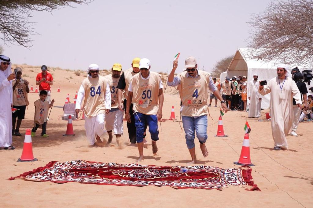 وانطلقت منافسات البطولة بمنطقة مرغم الصحراوية في دبي وامتد السباق لمسافة تتراوح ما بين 120 و 150 مترا مشى خلاله المشاركون على الرمال الساخنة حفاة الأقدام .