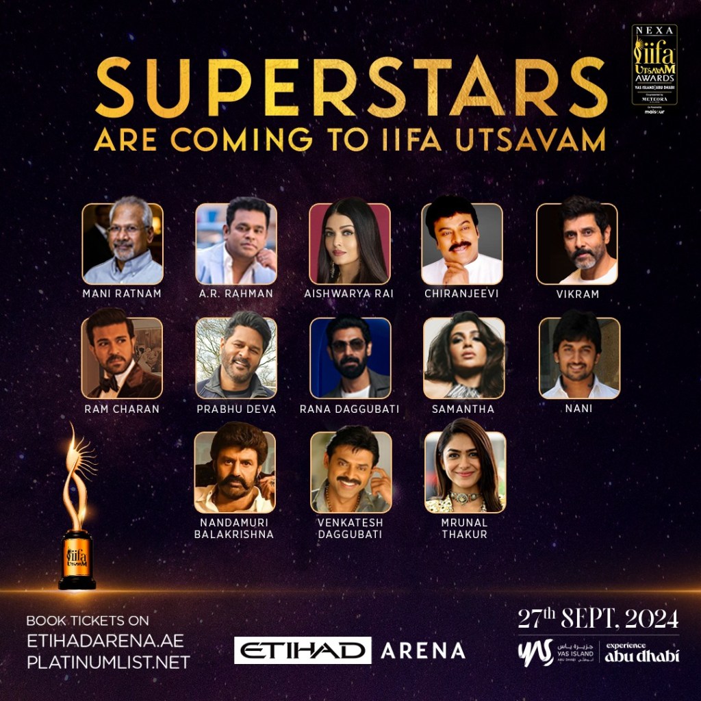 - The spectacular star-studded SOBHA Realty IIFA WEEKEND Co-Presented by NEXA Co-Powered By Maisour 2024 is all set to celebrate the power and diversity of the four vibrant South Indian film industriesāTamil, Telugu, Malayalam, and Kannadaāwith an extraordinary line-up featuring Chiranjeevi, Ram Charan, Rana Daggubati, Teja Sajja, Vikram, Aishwarya Rai Bachchan, SJ Suryah, Samantha, Jiiva, Mrunal Thakur, Nani, Mani Ratnam, AR Rahman, Balakrishna, Jayam Ravi, Keerthy Suresh, Indrajit Sukumaran, Anaswara Rajan, Mamitha Baiju, Shraddha Srinath, Brahmanandam, and Shine Tom Chacko and many more