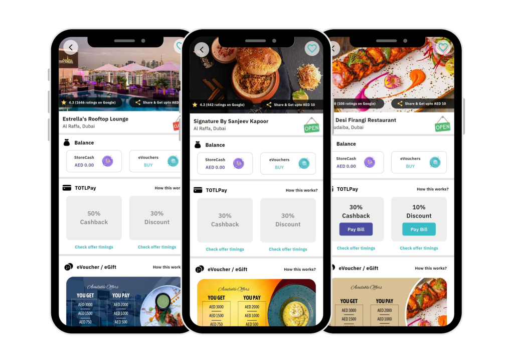 With TOTL’s exclusive offers, you can indulge in some of the city’s finest culinary delights while enjoying up to 50% cashback rewards. Here’s a taste of what Dubai’s dining scene has to offer:
