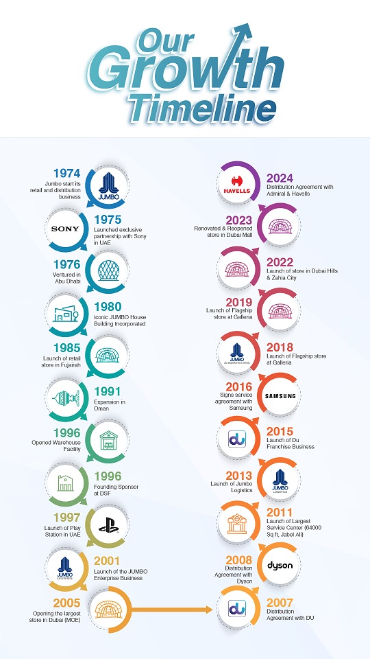 - Expanding Distribution Categories: As a leading distributor, Jumbo is constantly on the lookout for new global brands to bring to the UAE. The goal is simple: to give UAE consumers access to the latest and best products from around the world, while expanding its footprint in new categories.