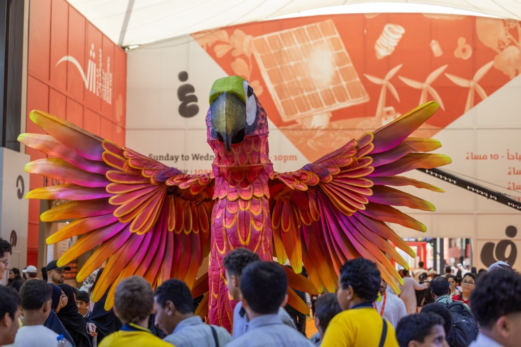 استمتع زوار معرض الشارقة الدولي للكتاب في دورته الـ 43 التي انطلقت تحت شعار “هكذا نبدأ” بالعرض الاستعراضي المميز “الطيور الملونة”، الذي قدمته فرقة روسية متخصصة في الرقصات الاستعراضية على الركائز العالية، وهو عبارة عن رقصات تعبيرية لافتة، تنفذها ببغاواتٌ ذات ألوان زاهية، تتحرك بشكل مرح، متناغمة مع موسيقى من مختلف الأنواع والثقافات، ذات إيقاع سريع نسبياً؛ لخلق أجواء حماسيةٍ ممتلئة بالفرح في ردهات وأروقة المعرض، تفاعل معها زوار المعرض من الأطفال وطلبة المدارس والتقطوا الكثير من الصور مع الببغاوين المرحين.