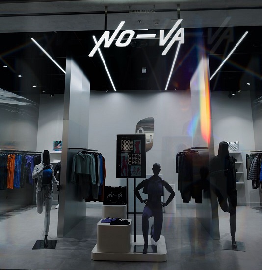 Drawing inspiration from the brand’s name, NO-VA, which evokes celestial imagery, the store’s design features cosmic elements that symbolize innovation and limitless potential. A sleek, silver-toned interior paired with an open, airy layout delivers a modern shopping experience that encapsulates NO-VA’s ethos of elegance, dynamism, and an active lifestyle.