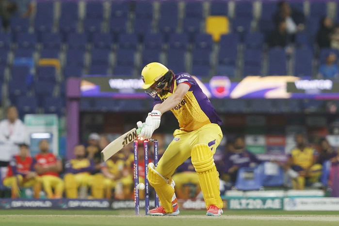 The momentum, though, was still with the Sharjah Warriorz as they were at 101/3 and needed 46 runs from the final seven overs with as many wickets in hand. Tim Seifert played a gem of an innings as he ensured he scored a boundary in each of the next three overs to take his team closer to the target. Kohler-Cadmore’s patient innings was snapped by Fazalhaq Farooqi, the tournament’s leading wicket-taker, after the Englishman played it onto his stumps for 40 off 40.