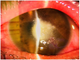 However, he did not respond and subsequently went for a partial Cornell transplant known as Deep anterior lamellar keratoplasty . And after 1 month of treatment he recovered his eye sight in the effected eye.