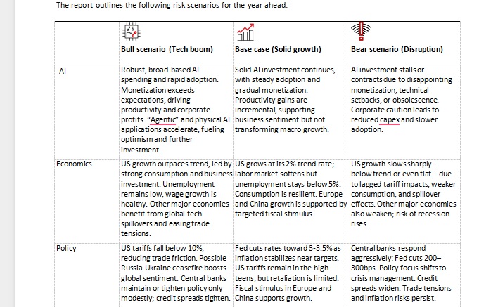 While political headlines will remain front and center in 2026, history suggests their impact on financial markets is often short-lived. However, there are risks that could bring markets back to earth in the year ahead, including: 1) a potential disappointment in AI progress or adoption, 2) a resurgence or persistence of inflation, 3) a more entrenched phase of US-China strategic rivalry, and 4) the (re-) emergence of sovereign or private sector debt concerns.