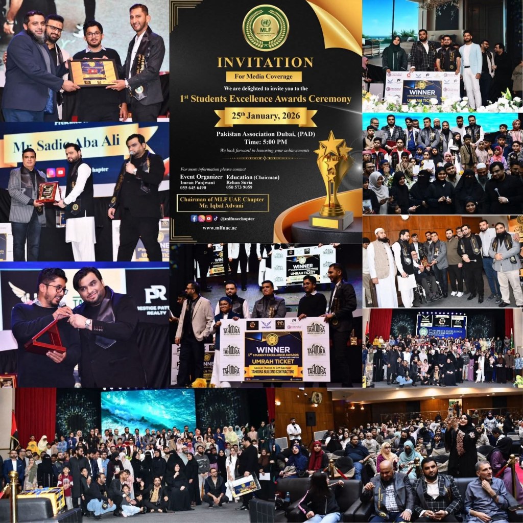 DUBAI: The Memon Leadership Forum (MLF), under the dynamic leadership of Chairman Mr. Iqbal Advani, successfully hosted its first-ever Students Excellence Awards Ceremony, powered by Crystal Bay Azure, on Sunday, 25 January 2025, at the Pakistan Association Dubai. The landmark event celebrated the achievements of students who demonstrated exceptional academic performance, leadership skills, and all-round excellence.