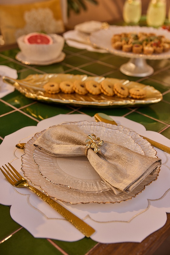 Layali completes the edit with lighter greens, white and muted gold, creating a calmer, airier story suited to serene spaces. It brings a softer Ramadan atmosphere through understated table styling and gentle decorative touches.