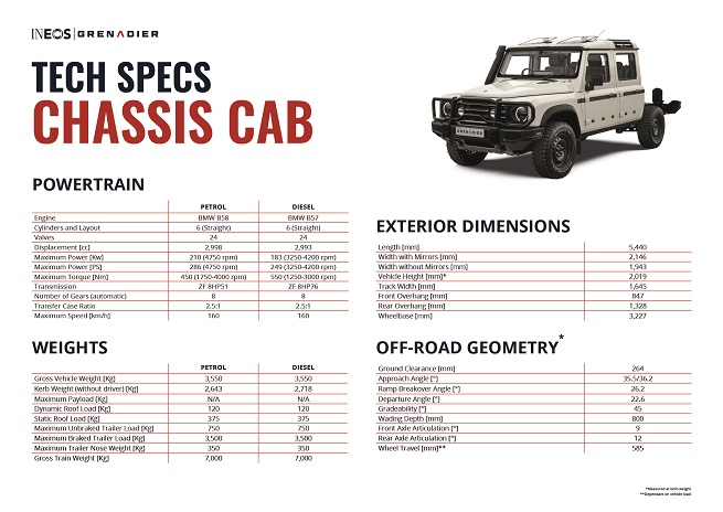 - Five-seat double cab chassis variant uses the same extended frame as the Grenadier Quartermaster pick-up and is targeted at specialist conversion companies and commercial body builders.