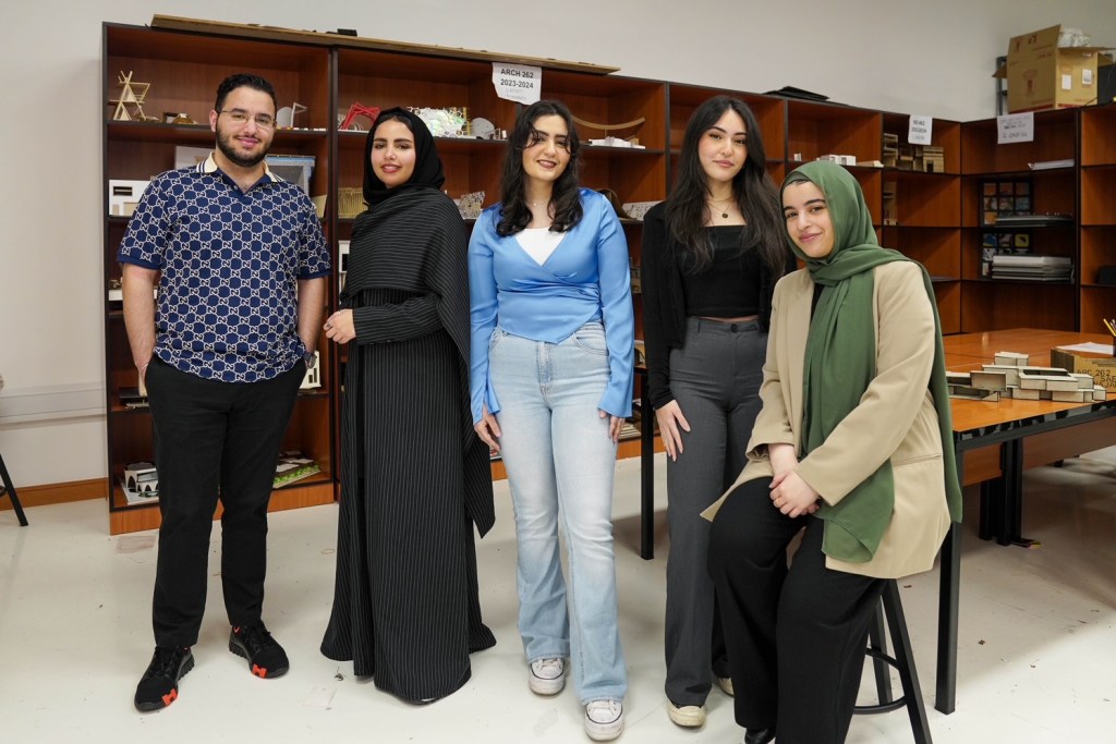 Winning CUD students Haider Alhaider, Karen Munzer, Rowan Hassan, Alanoud Altaweel and Aysha Mahmoud