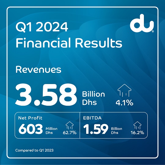 Dubai, UAE. 22July 2024 – Emirates Integrated Telecommunications Company PJSC announced its financial results for Q2 2024. Revenues increased by 7.3% to AED 3.6 billion demonstrating our strong product offerings. EBITDA increased by 3.2% to AED 1.6 billion reflecting the top line growth. Net Profit reached AED 581 million, a 46.3% increase year over year primarily reflecting the strong EBITDA growth. Capex was at AED 442 million, while Operating Free Cash Flow (EBITDA – Capex) was AED at 1.1 billion, a 10.9% increase year over year.