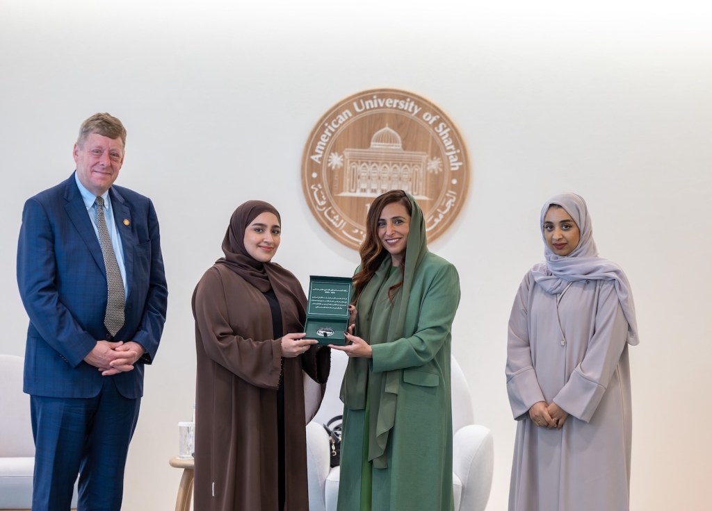 Sharjah, UAE, March 3, 2025 – Her Excellency Sheikha Bodour bint Sultan Al Qasimi, President of American University of Sharjah (AUS), recognized a team of students, alumni and faculty from AUS for their contributions to The Pawned Dagger, a theatrical adaptation of a literary work by His Highness Sheikh Dr. Sultan bin Mohammed Al Qasimi, Member of the Supreme Council of the United Arab Emirates and Ruler of Sharjah, during an on-campus award ceremony.
